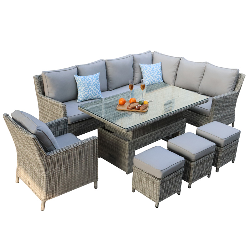 Material: Powder coated aluminum frame & half round and round PE rattan & tempered glass table top
